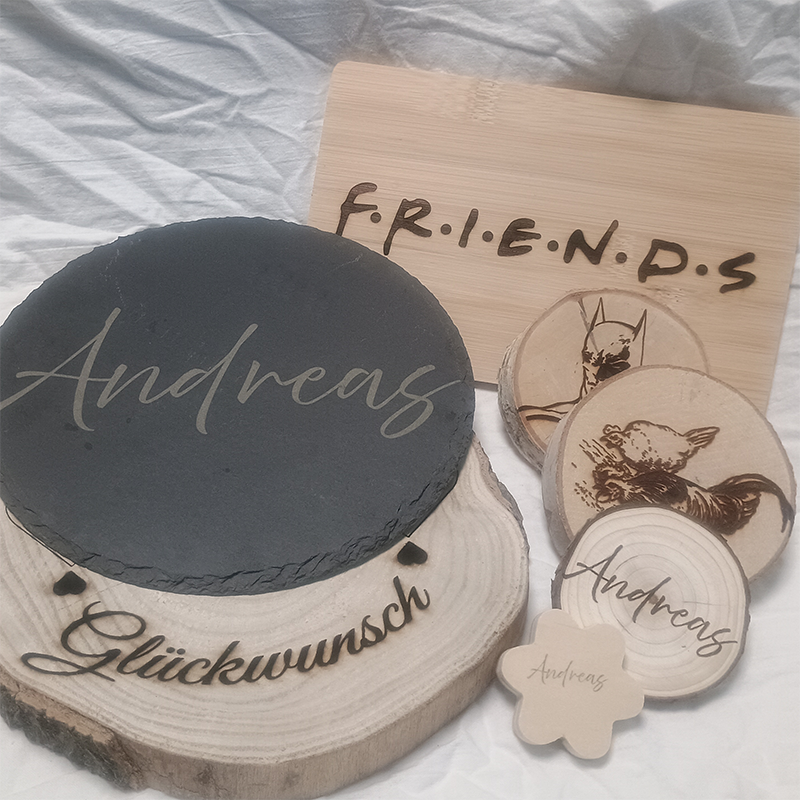 Individuelle Gravuren auf verschiedenen Materialien.